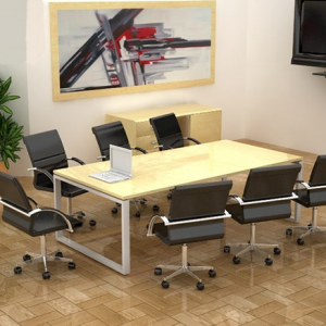 Mesa de juntas fabricada en melamina de 28mm. con canto plano termoadherido y base metálica en acabado de pintura electrostática.