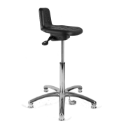 Silla cajero de asiento y respaldo tapizado en tela, con pistón neumático para ajuste de altura, base de cinco puntas con rodajas o regatones a elegir y aro descansa pies.